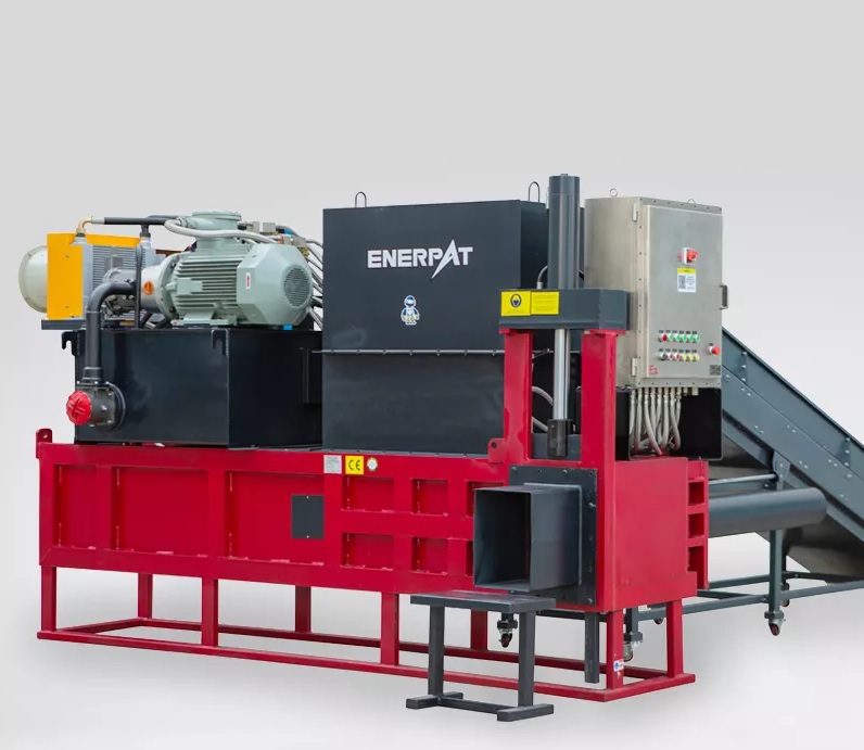 DESCRIÇÃO - A Enfardadeira automática de Metal com tampa ENERPAT foi concebido para pressionar metais pesados como sucata de aço, corpo de carros usados, sucata de alumínio, etc. em fardos compactos.